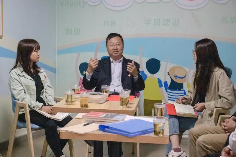 10月16日下午,第九期“宁校有约”在宋跳校区男生公寓一号楼大厅顺利举行。校长宁晓明就“大学课余生活如何度过”“大学生如何成人成才”“职业生涯如何合理规划”等话题与8位学生代表进行交流。