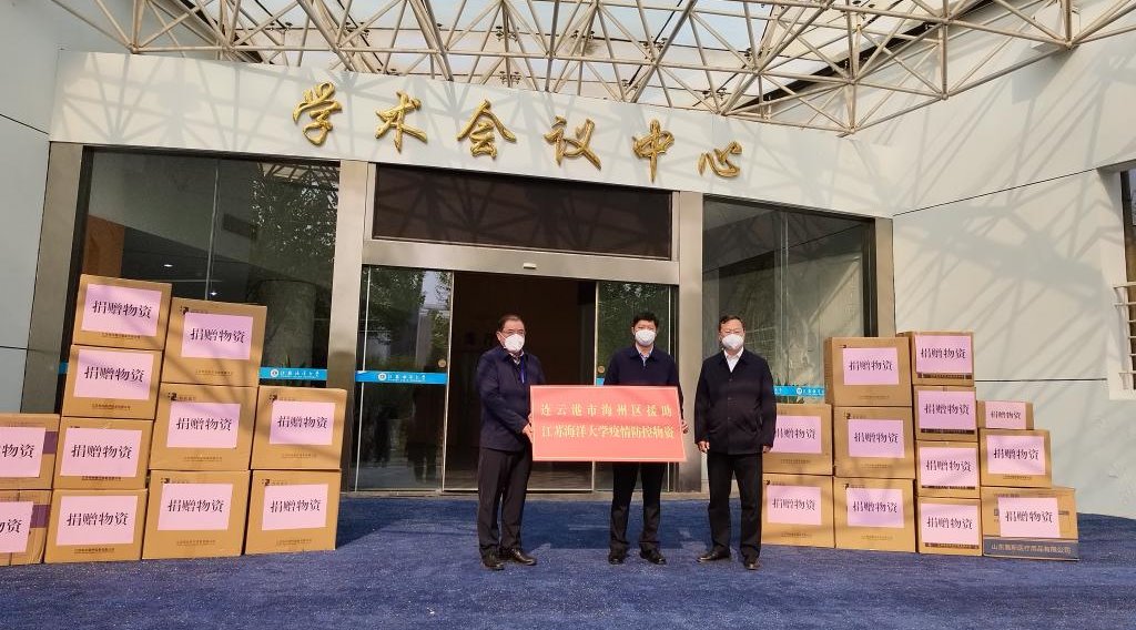 会前,朱兴波代表海州区委、区政府向我校捐助了防护服、面罩、N95口罩等一批防控物资,助力学校疫情防控工作。