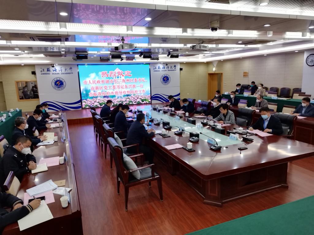 4月18日下午,连云港市人民政府副市长、海州区委书记、高新区党工委书记朱兴波带领海州区校地疫情联防联控工作专班人员来校调研疫情防控工作,并召开工作对接会。校领导王自力、宁晓明、李梅英、朱国军参加活动。