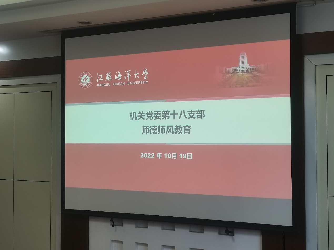 根据学校党委要求,10月19日,机关党委第十八党支部在行政楼二楼会议室开展师德师风专题教育活动,发展规划处和审计处全体老师深入学习国家、江苏省以及学校相关师德师风文件规定,进一步提升坚守从教初心、践行育人使命的信心。