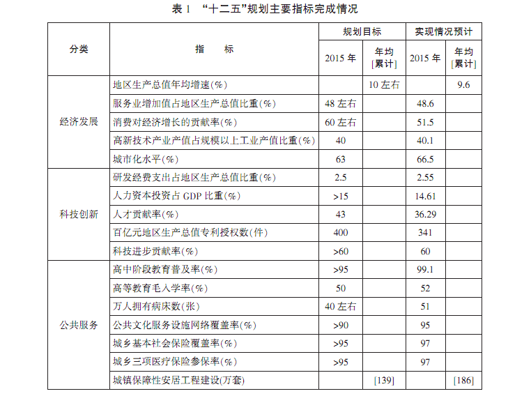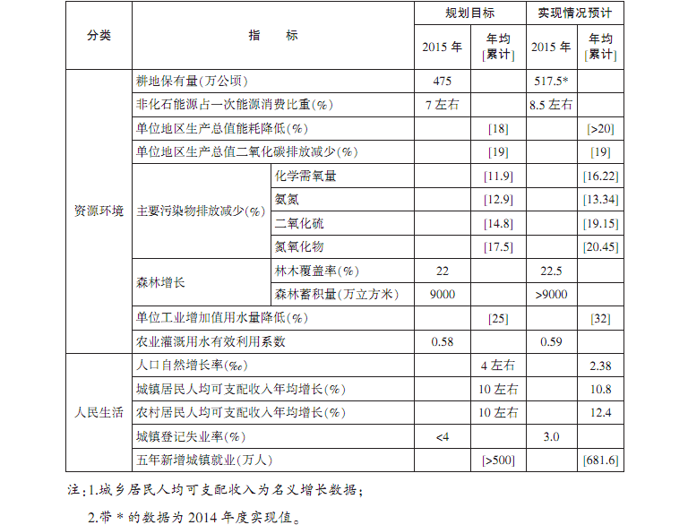 表1 “十二五”规划主要指标完成情况
